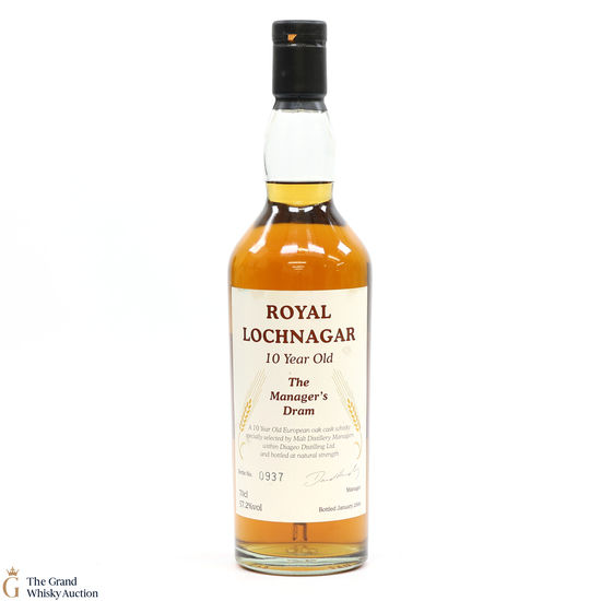 This 10 year old Royal Lochnagar is from the highly collectable Manager's Dram series of single malt releases. The bottles were released to be available exclusively to employees of what is now known as Diageo. Each release was selected by distillery managers within Diageo and bottled at natural cask strength.