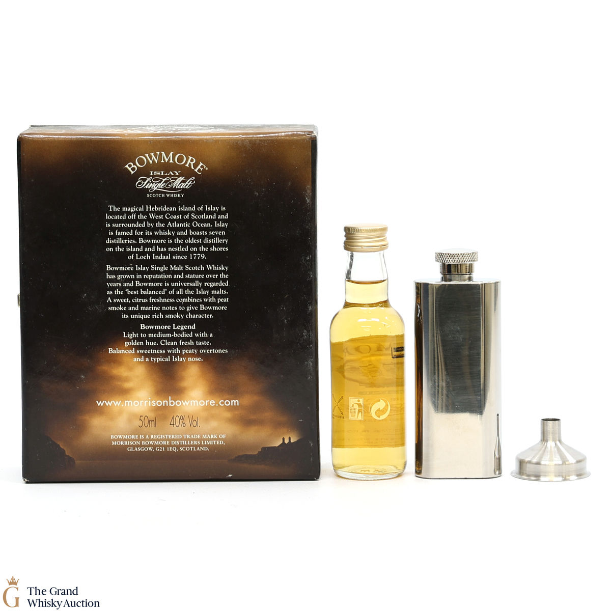 This is a 5cl bottling of Bowmore Legend which also includes a Bowmore Hipflask.