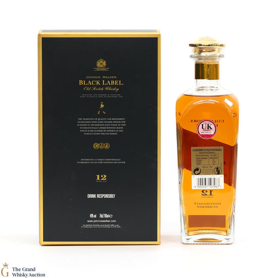 Johnnie Walker Black Label's iconic square bottle makes it one of the world's most recognisable whiskies. It is a blend of around 40 whiskies. This is the special Collectors edition.