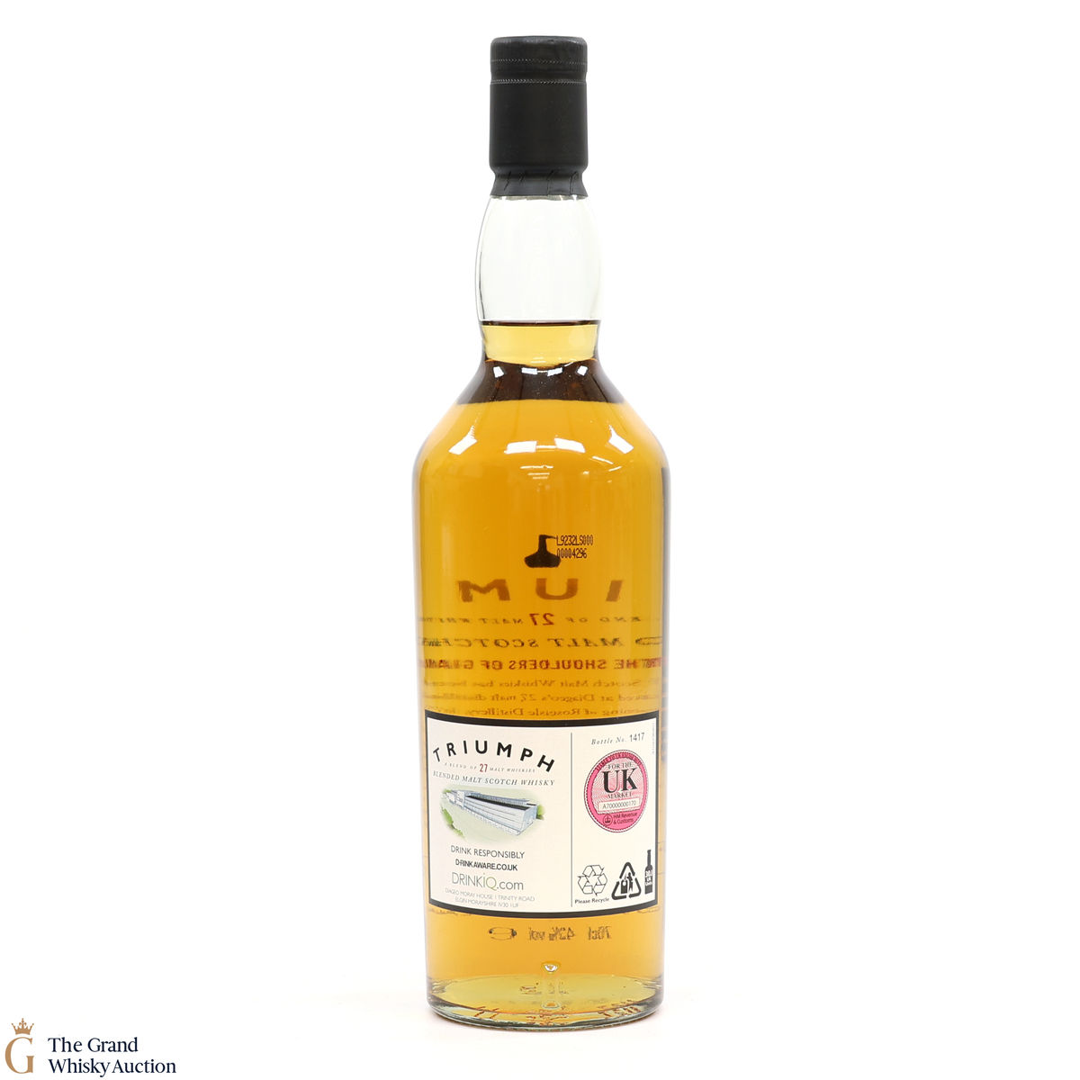 Due to the various ages of bottles and their seals, the condition of liquid is at the buyer's discretion and no claim can be lodged against failure/leakage in transit. Loss and breakage cover is available at 3% of the hammer price as standard. If the lot is not insured, no claim can be lodged against the courier or The Grand Whisky Auction for breakage or loss in transit.