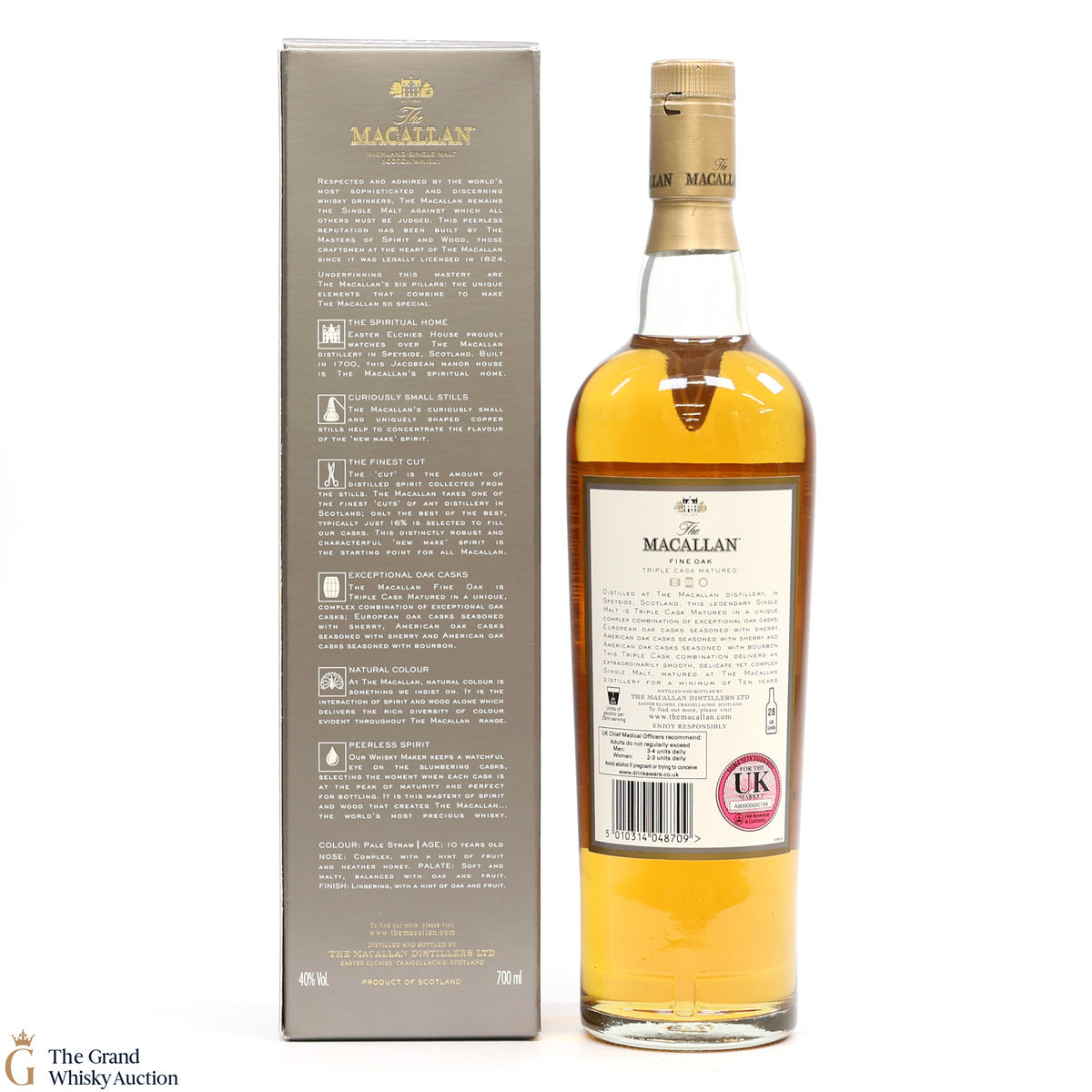This 10-year-old single malt is part of Macallan's Fine Oak, triple cask matured range. It has been matured for ten years in three oak cask types; Europen oak seasoned with sherry, American oak seasoned with sherry and American oak seasoned with bourbon. This bottling has been discontinued.