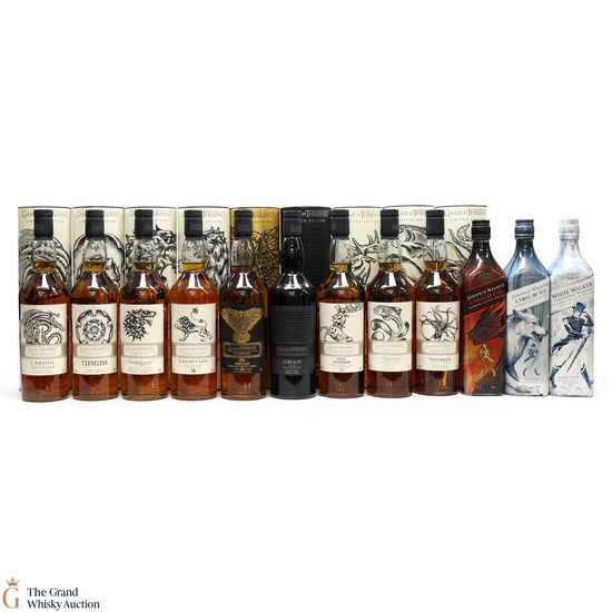 Game of Thrones series plus Johnnie Walker White Walker Game of Thrones edition, Song of Fire and Mortlach, Six Kingdoms edition. This lot includes 12 x 70cl.