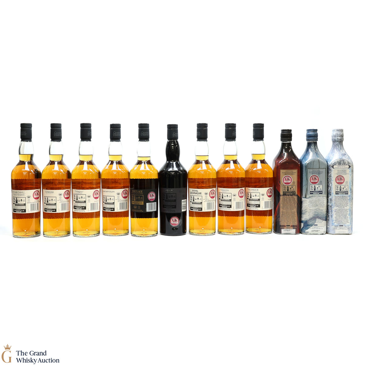 Game of Thrones series plus Johnnie Walker White Walker Game of Thrones edition, Song of Fire and Mortlach, Six Kingdoms edition. This lot includes 12 x 70cl.