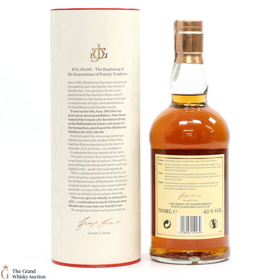 Bottled by Glenfarclas to celebrate 150th years of the distillery being owned by the Grant family.