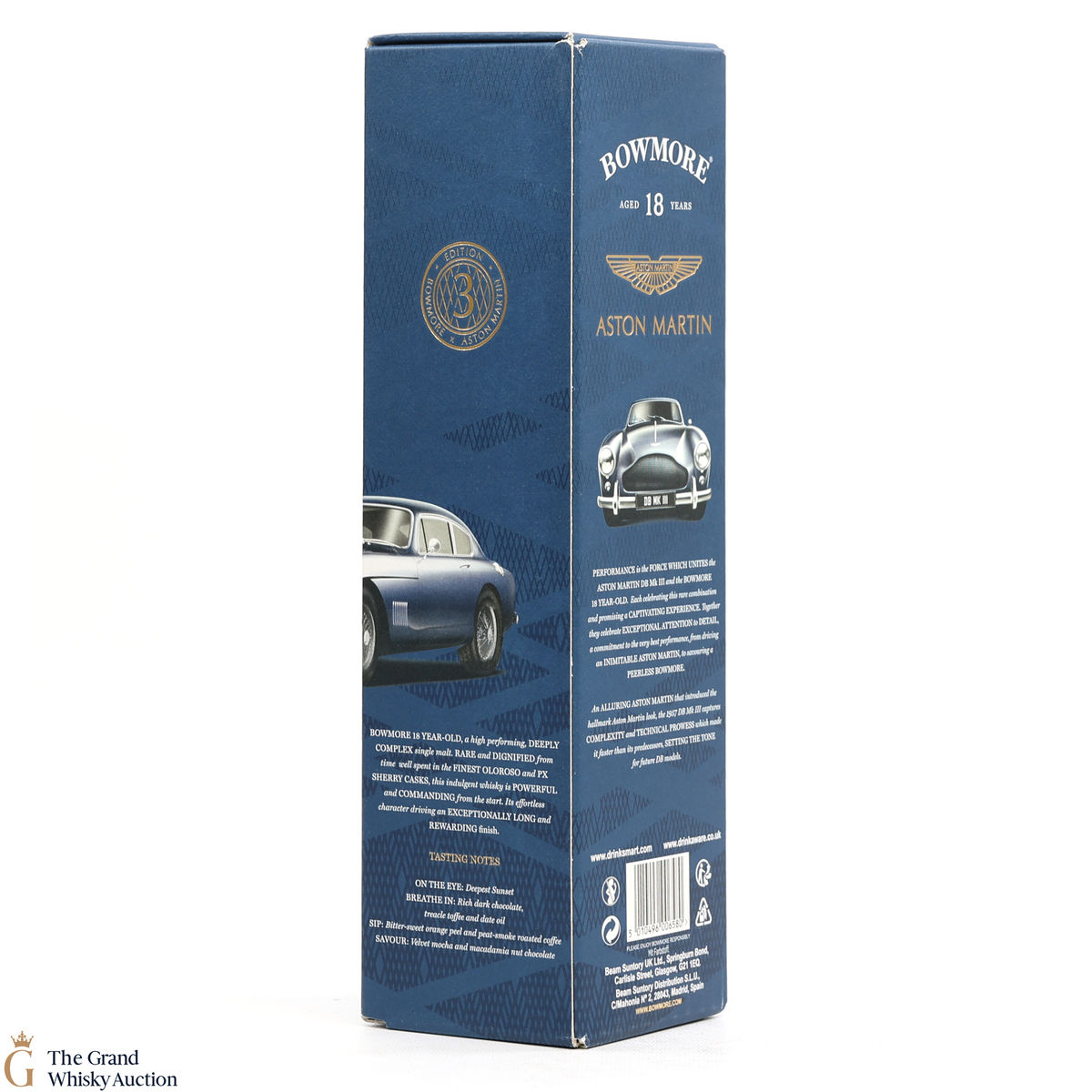 Edition 3 of the Bowmore x Aston Martin collaboration celebrates the iconic Aston Martin DB Mk III. Capturing complexity and technical prowess, making it faster than its predecessors. A great pairing for the deep and complex 18-year-old, rich maturity from the depths of Oloroso and Pedro Ximenez sherry casks. Bottled at 43% ABV.