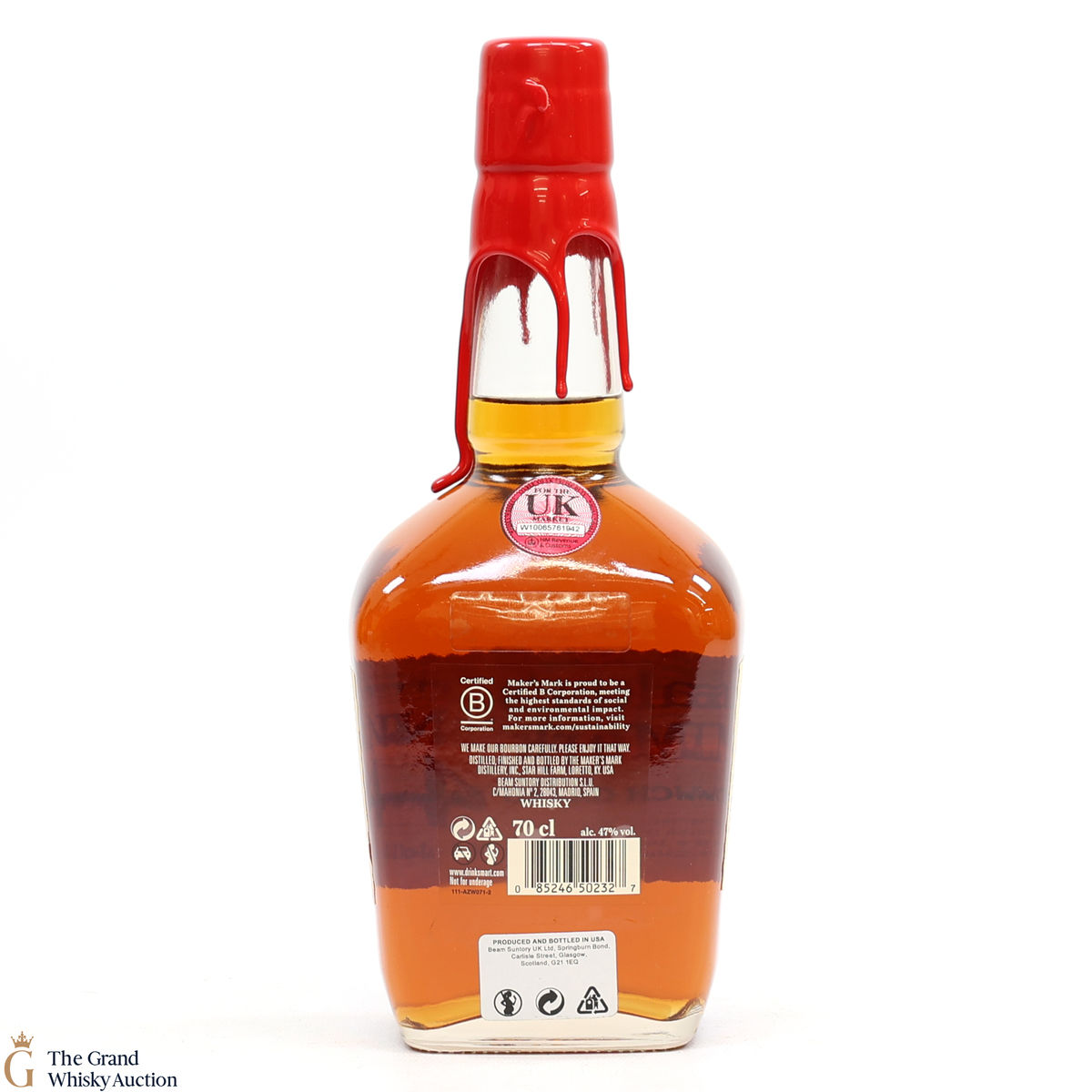 The first bourbon in the Makers Mark wood-finishing series. Maker's Mark 46 was created by Bill Samuels, Jr., to amplify the flavours he loves in Maker's Mark. The innovative wood-stave-finishing process starts with a fully matured Maker's Mark at cask strength. Then 10 seared virgin French oak staves are inserted into the barrel and finished for nine weeks in a limestone cellar.