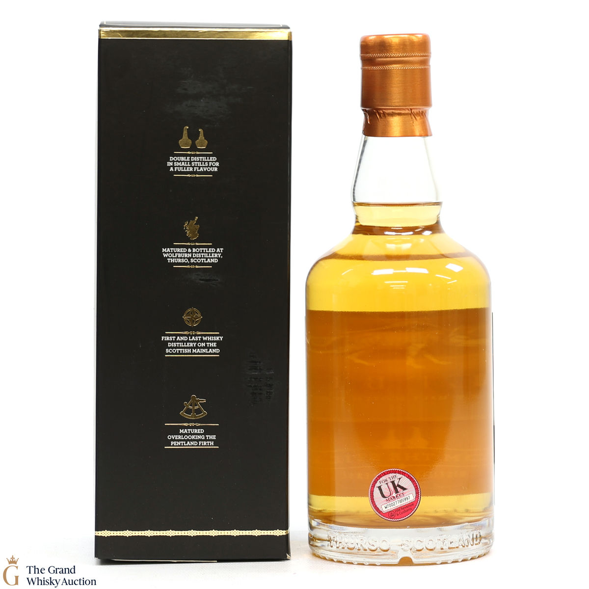 Due to the various ages of bottles and their seals, the condition of liquid is at the buyer's discretion and no claim can be lodged against failure/leakage in transit. Loss and breakage cover is available at 3% of the hammer price as standard. If the lot is not insured, no claim can be lodged against the courier or The Grand Whisky Auction for breakage or loss in transit.