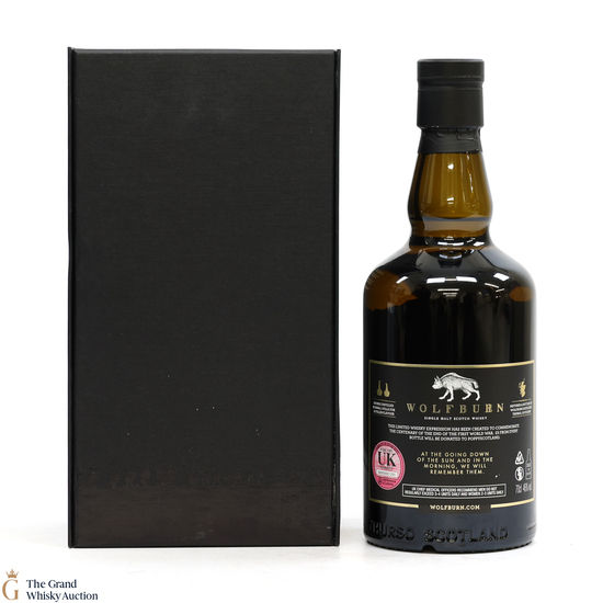 A limited edition from Wolfburn Distillery to commemorate the 100th anniversary of the end of The First World War. A total of 1918 bottles were produced and sold exclusively from the distillery and through the Carnegie Whisky Cellars in Dornoch. This project is important to both companies and was proposed to Wolfburn Distillery due to the owners of Wolfburn being former British Servicemen and the importance of the Poppy Appeal to all service personnel and their families.