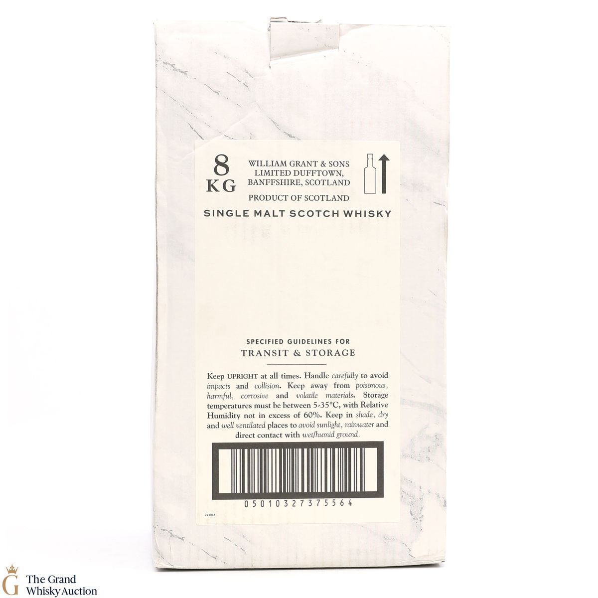 Due to the various ages of bottles and their seals, the condition of liquid is at the buyer's discretion and no claim can be lodged against failure/leakage in transit. Loss and breakage cover is available at 3% of the hammer price as standard. If the lot is not insured, no claim can be lodged against the courier or The Grand Whisky Auction for breakage or loss in transit.