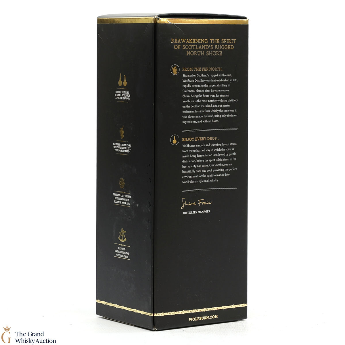 The most northerly whisky distillery on the Scottish mainland is situated in Thurso in the county of Caithness and Scotland’s Highlands whisky region. Wolfburn named after the watercourse that supplies the distillery was originally owned and operated by William Smith in 1821 before operation ceased in 1837. Laying dormant until 2012 when a private consortium called Aurora Brewing formed to rebuild Wolfburn 350 meters from the original distillery ruins. Whisky production resumed in 2013 after 157 years.