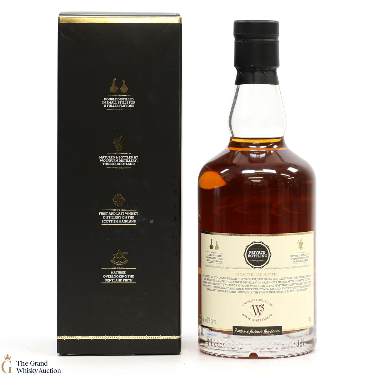Due to the various ages of bottles and their seals, the condition of liquid is at the buyer's discretion and no claim can be lodged against failure/leakage in transit. Loss and breakage cover is available at 3% of the hammer price as standard. If the lot is not insured, no claim can be lodged against the courier or The Grand Whisky Auction for breakage or loss in transit.
