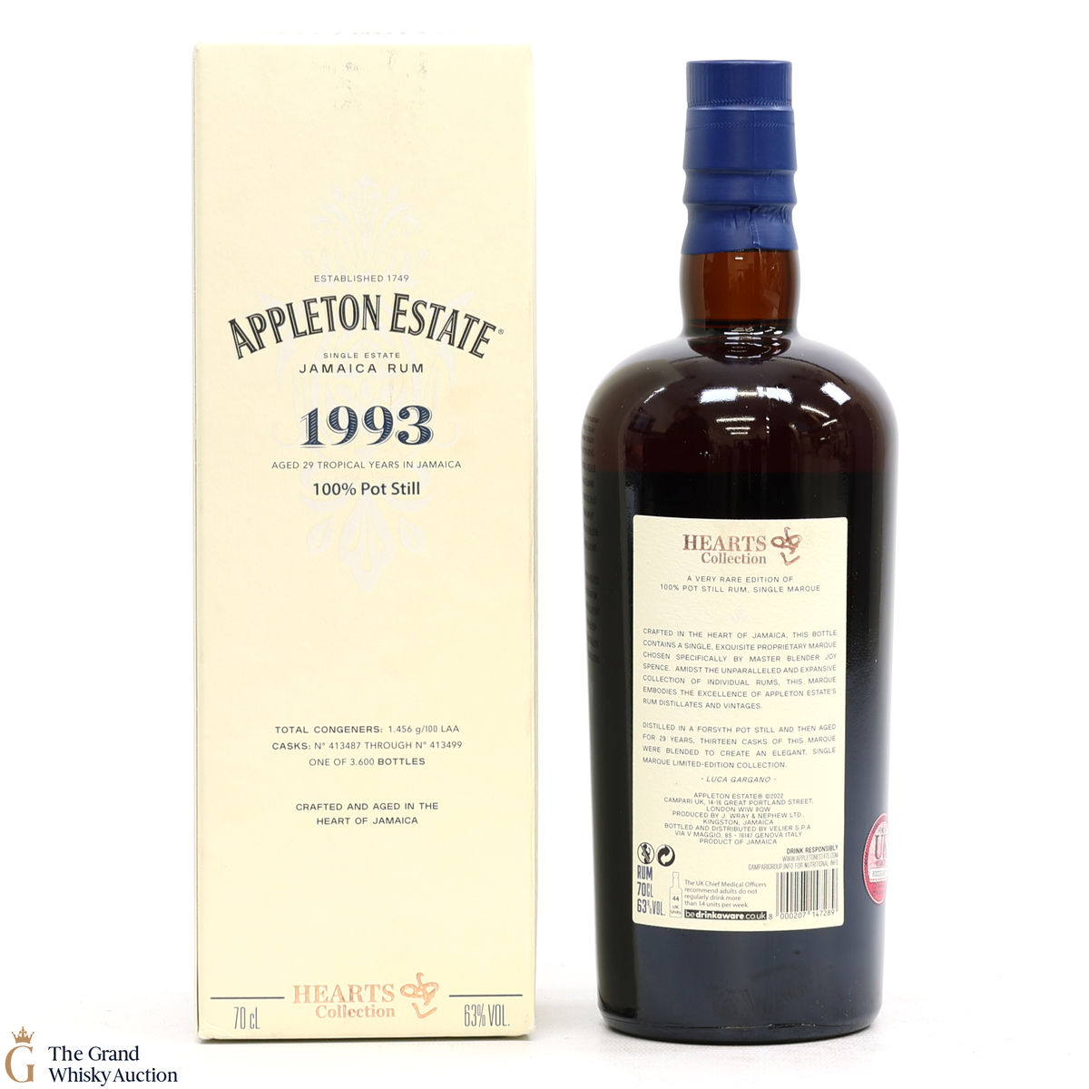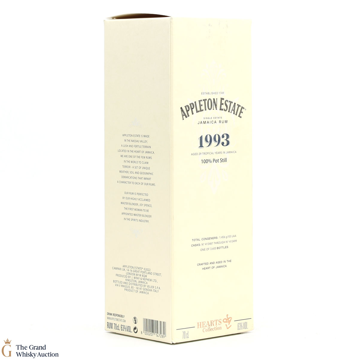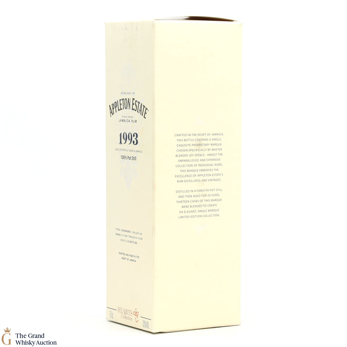 Part of the Appleton Hearts Collection. This is a limited release of single marque, pot still rum that was matured for a minimum of 29 years. 13 casks were chosen by Master Blender Joy Spence. The Hearts Collection celebrates single-marque (or single-recipe) rums made using a specific Forsyth pot still at Appleton Estate.
