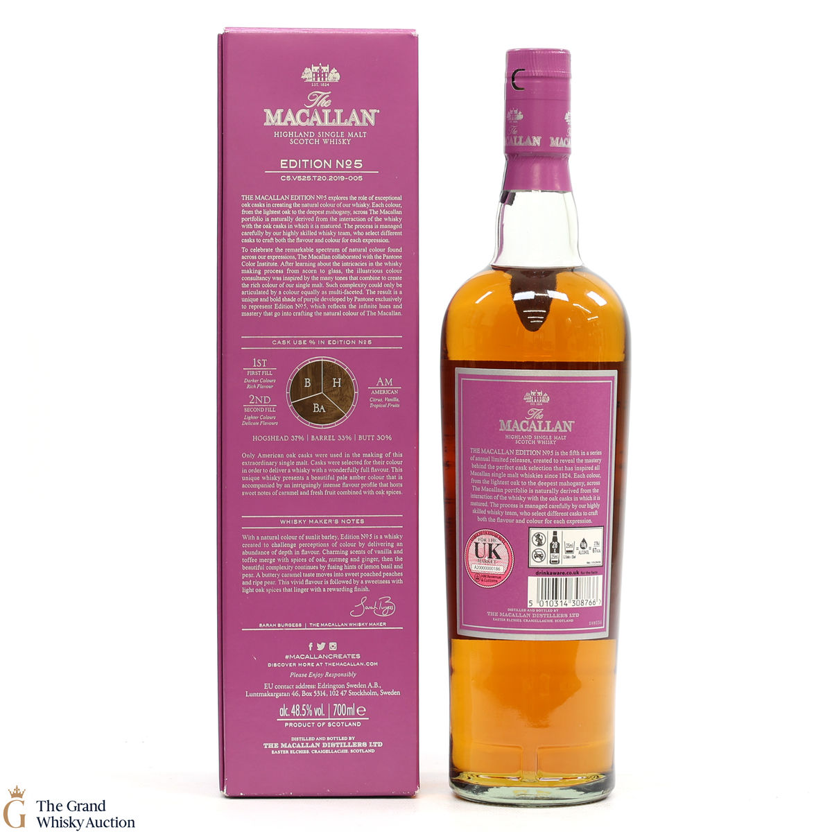 The fifth release in the Edition Series from The Macallan, The Macallan Edition No. 5 celebrates The Macallan’s extensive natural colour spectrum and the intricate whisky-making process, in partnership with masters at the Pantone Color Institute™ to create a unique shade of purple that features on the packaging.