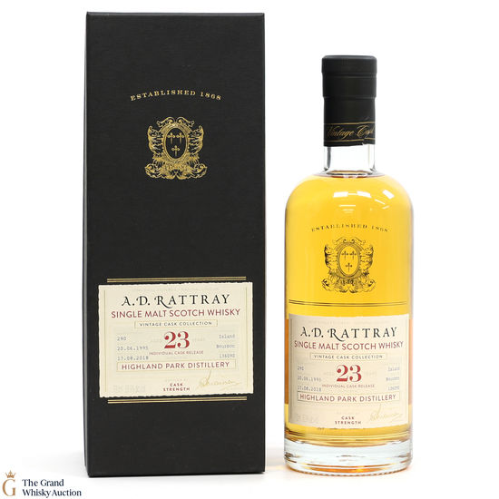 This single malt was distilled at the Highland Park Distillery in Orkney, it was matured for 23 years in bourbon cask #136090. Bottled in 2018 at a strength of 53.9% ABV, this is one of only 290 bottles produced for A.D. Rattray's Vintage Cask Collection.