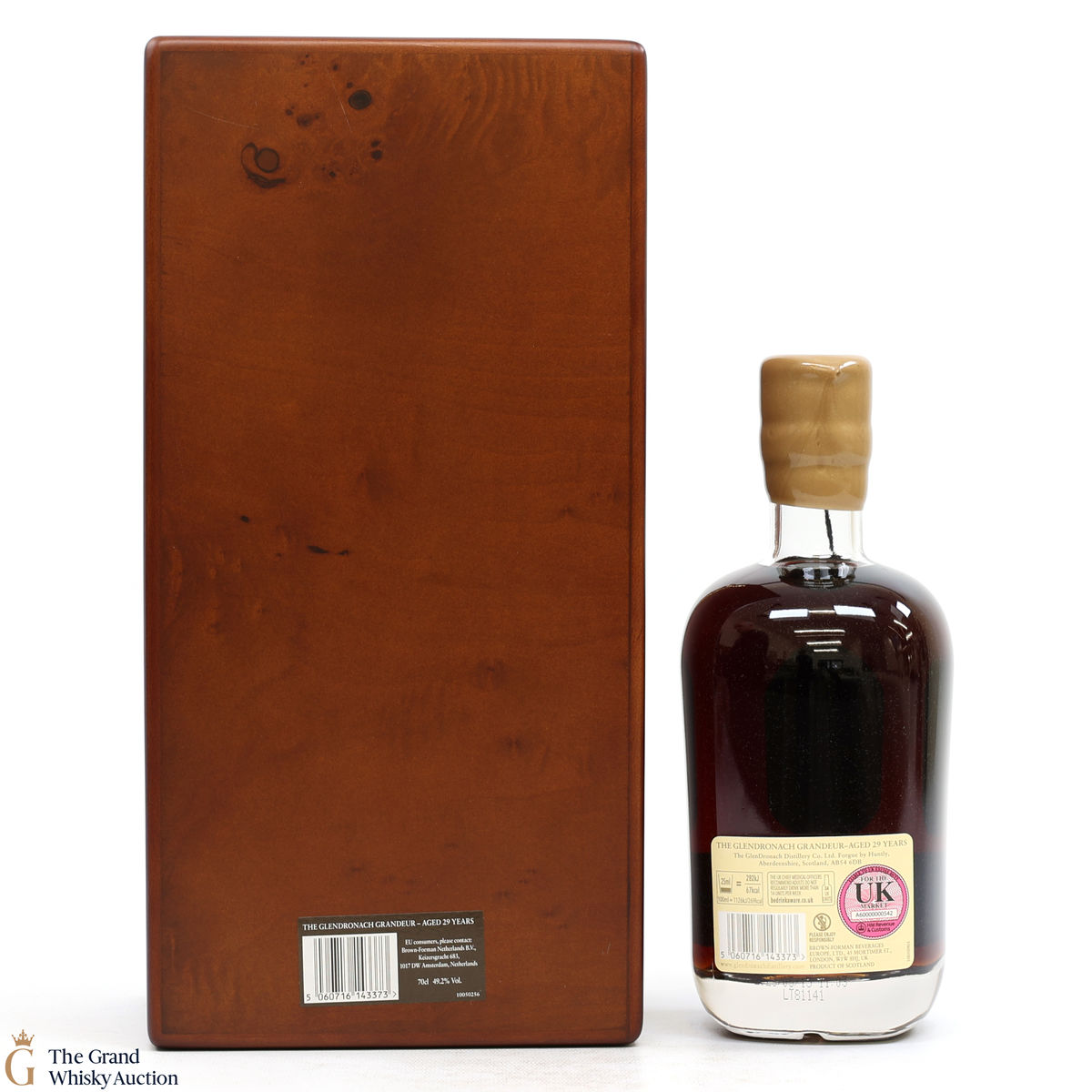 Due to the various ages of bottles and their seals, the condition of liquid is at the buyer's discretion and no claim can be lodged against failure/leakage in transit. Loss and breakage cover is available at 3% of the hammer price as standard. If the lot is not insured, no claim can be lodged against the courier or The Grand Whisky Auction for breakage or loss in transit.