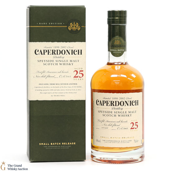 This rare Caperdonich single malt was matured in first-fill American oak barrels for 25 years.