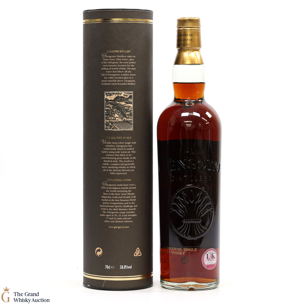 Due to the various ages of bottles and their seals, the condition of liquid is at the buyer's discretion and no claim can be lodged against failure/leakage in transit. Loss and breakage cover is available at 3% of the hammer price as standard. If the lot is not insured, no claim can be lodged against the courier or The Grand Whisky Auction for breakage or loss in transit.