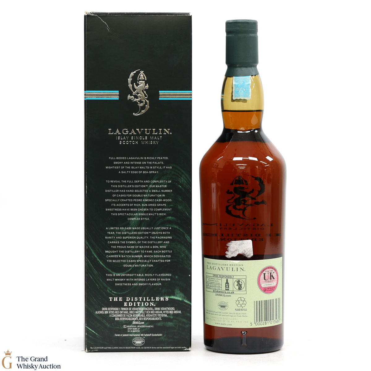 This Lagavulin Distillers Edition was distilled in 1997 before being bottled in 2013. This 16-year-old (ish) single malt whisky of the Classic Malts Selection was matured twice in European Pedro Ximenez Sherry oak casks - these give the whisky a more fruity and syrupy character.