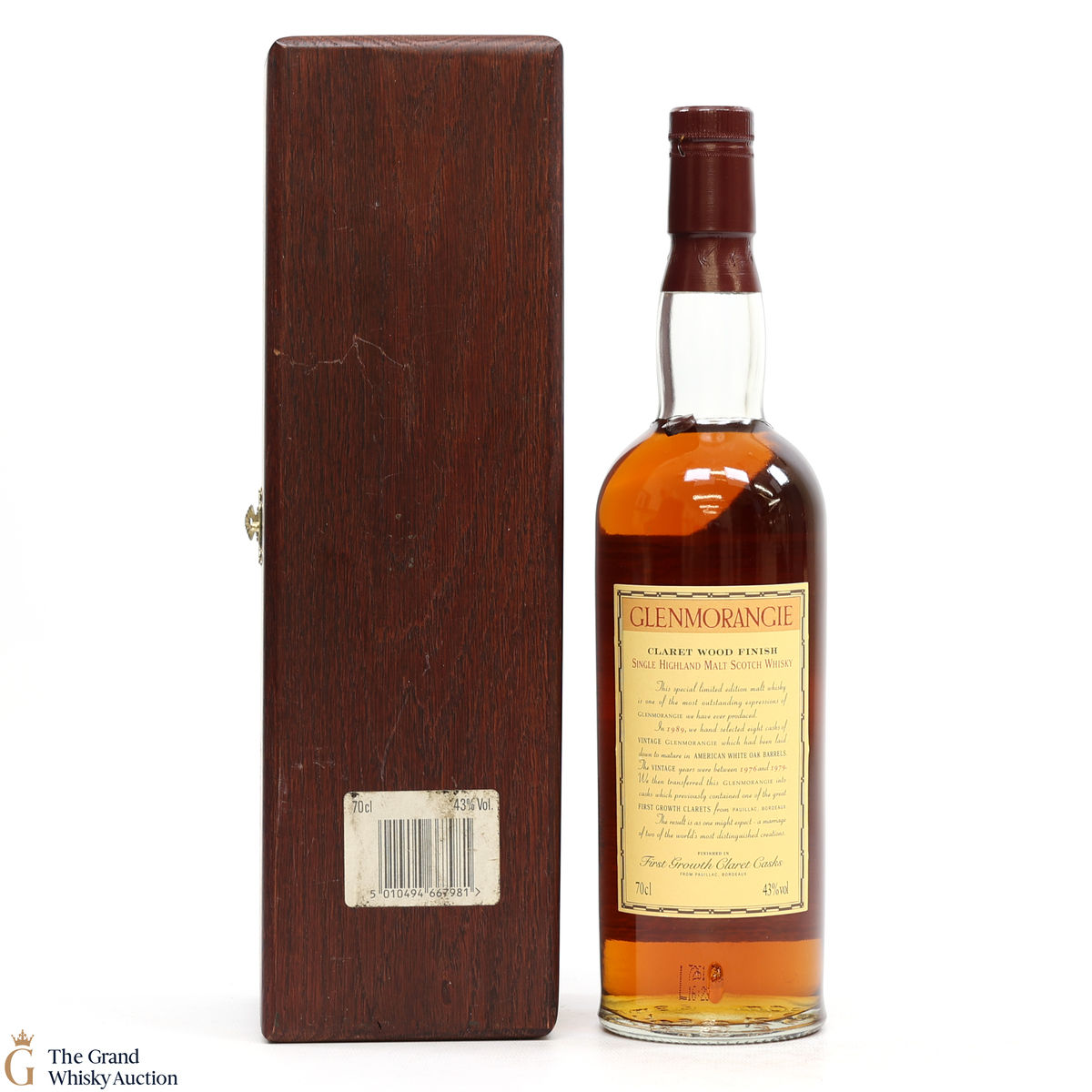 Produced in Scotland this Glenmorangie Claret Finish has been traditionally matured in American White Oak Barrels. This limited edition 000489 has been finished in a first growth claret cask from Pauillac Bordeaux. In 1989 they hand selected 8 casks of vintage Glenmorangie which was laid to mature in American White Oak Barrels.