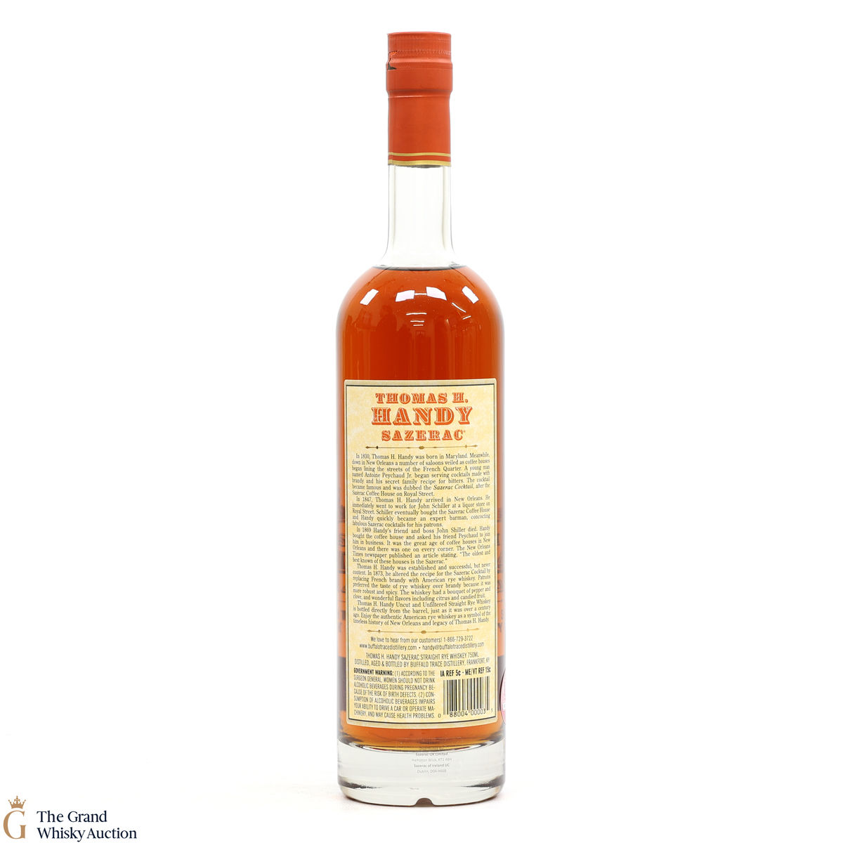 This collection is dubbed the antique collection and celebrates famous figures. The company's founder, Thomas H. Handy, is on the front of this bottle with the picture of the Sazerac Coffee House where everything started.