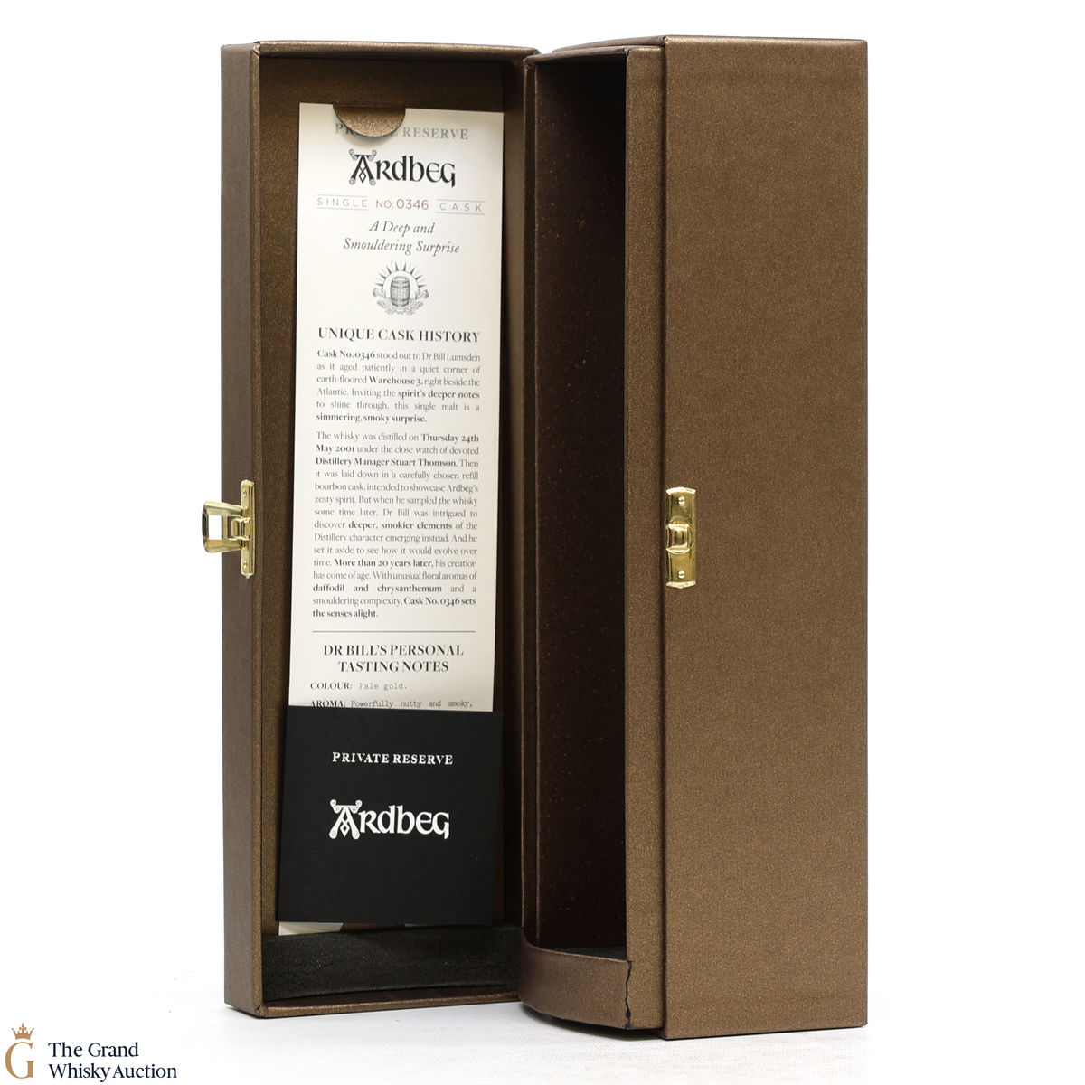 This private cask was distilled on the 24th May 2001 and matured under the careful guidance of Stuart Thompson who was Ardbegs manager at the time. Cask 346 was matured in warehouse 3 right beside the atlantic and produced only 145 bottles of 20 YO Ardbeg. Bottled at 42% exclusively for Angel's Share.