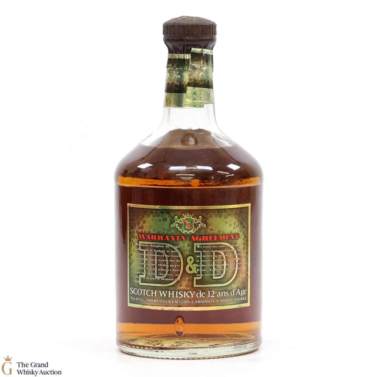 Due to the various ages of bottles and their seals, the condition of liquid is at the buyer's discretion and no claim can be lodged against failure/leakage in transit. Loss and breakage cover is available at 3% of the hammer price as standard. If the lot is not insured, no claim can be lodged against the courier or The Grand Whisky Auction for breakage or loss in transit.