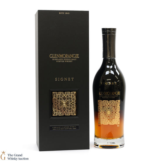 The Signet whisky was crafted using two types of malted barley, a single estate Cadboll variety, and a chocolate barley. Distilled twice through Glenmorangie's copper-pot stills and matured in American virgin oak casks before being bottled at 46% ABV.