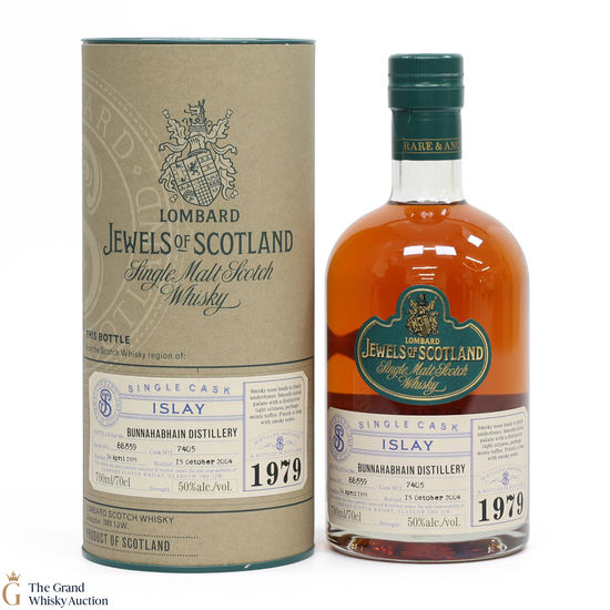 This Bunnahabhain was distilled in October 1979 and aged in cask #7405 before being bottled on the 15th of October 2004 by Lombard as part of their Jewels of Scotland range. One of 559 bottles.