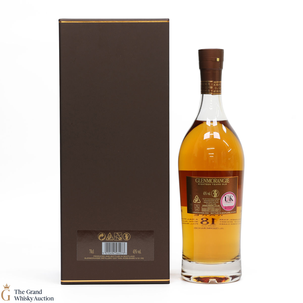 This bottle is an 18-year-old Extremely Rare, Highland single malt produced by Glenmorangie. It has been perfected by the sixteen men of Tain who have specially aged this bottle for 18 years in superior oak casks.
