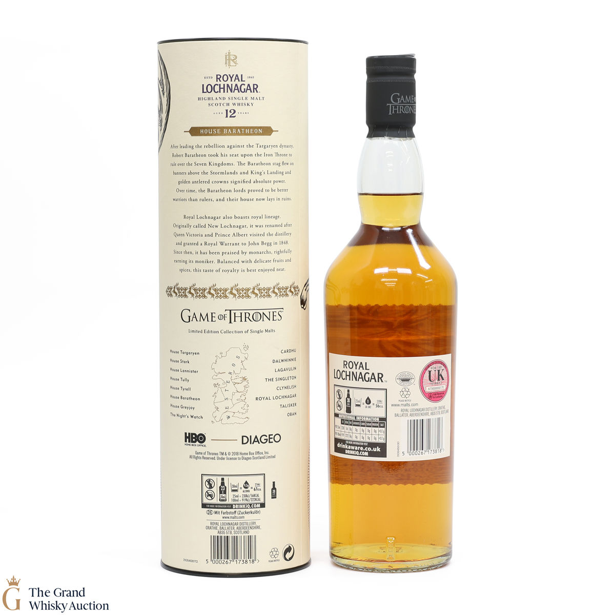 This is a limited-edition 12 year old single malt from Royal Lochnagar and it is part of Diagio's 2018 collaboration with HBO. Each single malt in the series relates to the land of houses of the Game of Thrones television series. The Royal Lochnagar bottle is decorated with a rampant black Stag, the sigil of House Baratheon that once flew on banners above the Stormlands and King’s Landing signifying absolute power.