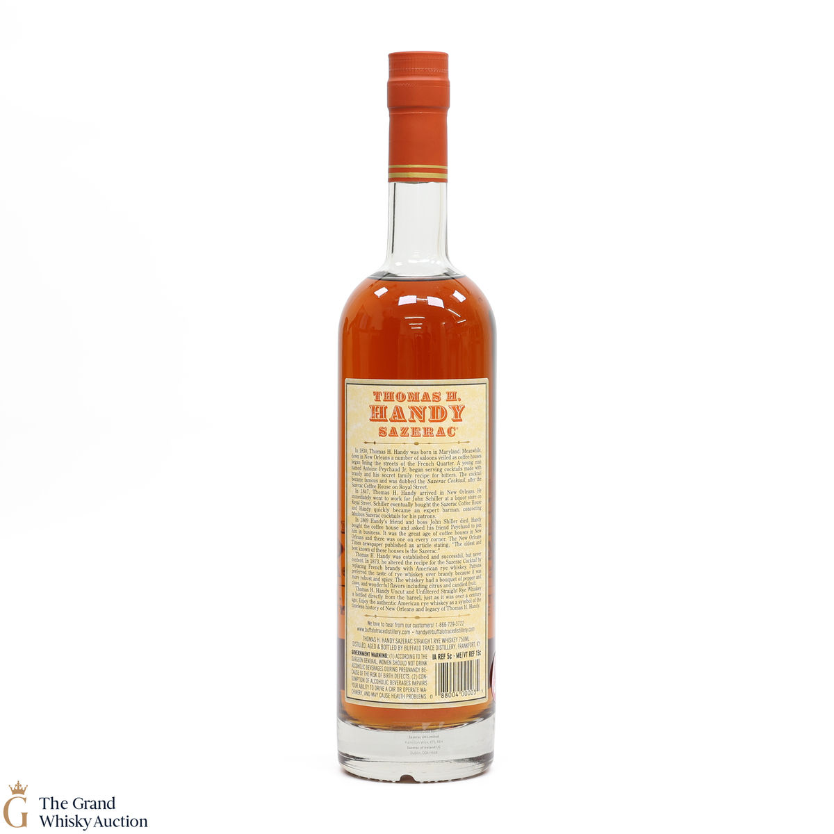 This collection is dubbed the antique collection and celebrates famous figures. The company's founder, Thomas H. Handy, is on the front of this bottle with the picture of the Sazerac Coffee House where everything started.