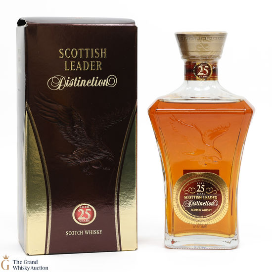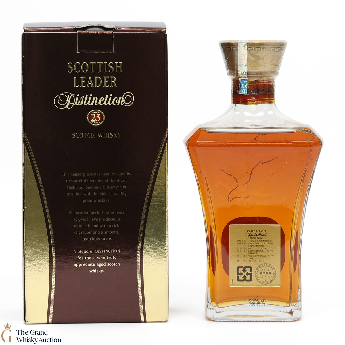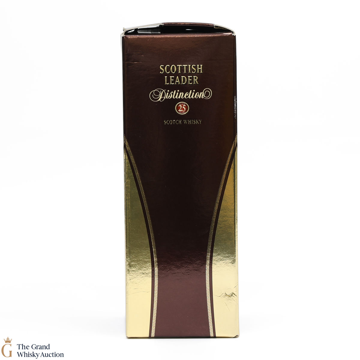 Scottish Leader 25-Year-Old Distinction is a superior blend of Scotch whisky, presented with the compliments of The Snowie Brothers. Distilled and bottled in Scotland.