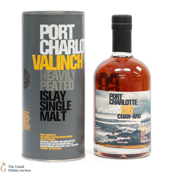 A Port Charlotte 2005 vintage matured for 10 years in Grenache Blanc cask #1615. Part of the Cask Exploration range, this is edition 06 Cuan-Ard. One of 432 individually numbered bottles, this is a limited edition from Bruichladdich Distillery. This is a 50cl bottling.