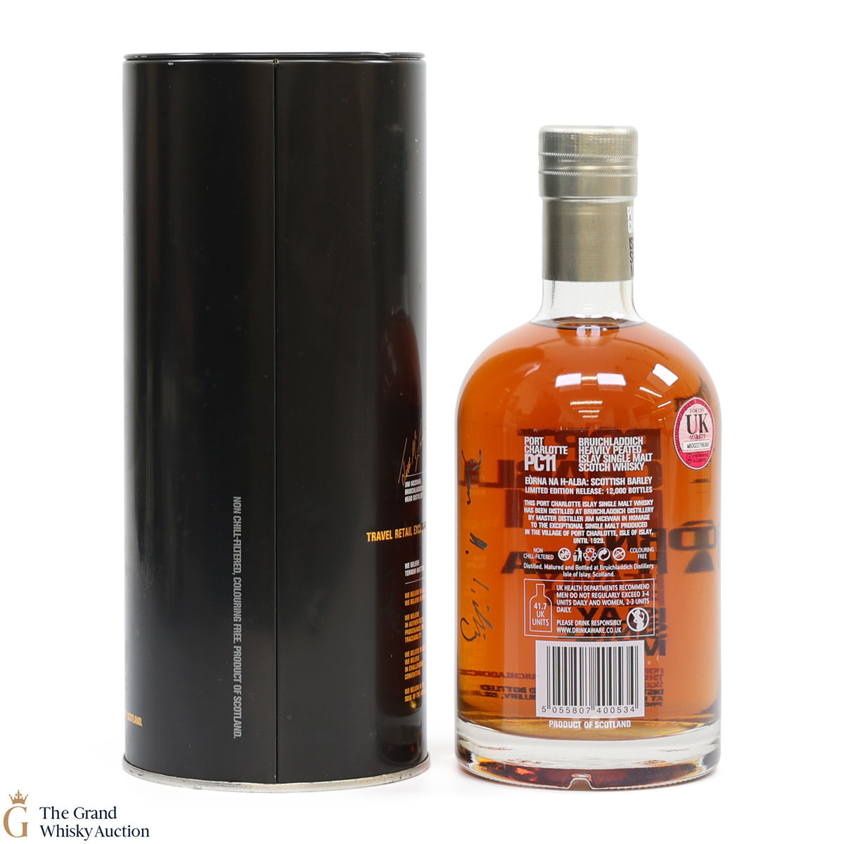 Port Charlotte and PC 11 (produced by Bruichladdich) is a heavily peated spirit (travel exclusive)