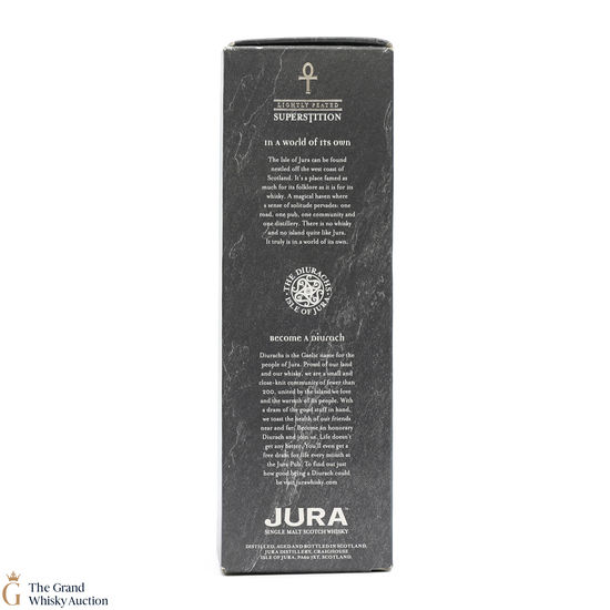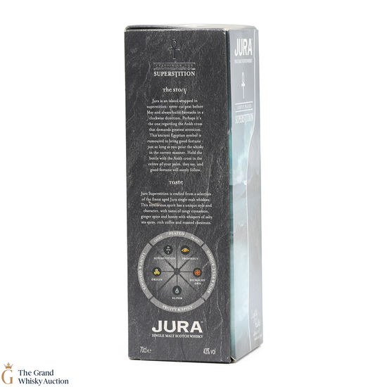 A lightly peated single malt made up of different ages. It is named after the fact that Islanders were very superstitious in the past, this is a nod to them, and to the Island of Jura which is still dotted with ancient stones and markings. When you raise a glass of this whisky, you're raising a glass to the ancient ways of the Island.