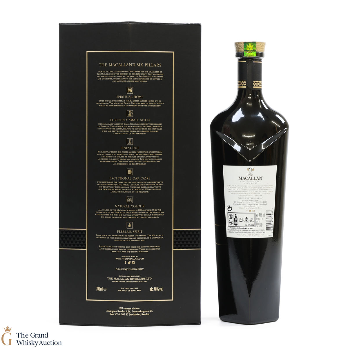 The Macallan Rare Cask Black Limited Edition was released to celebrate the opening of the new Macallan Distillery. It is part of the Macallan 1824 series and features stunning photography by Paolo Pellegrin and a bespoke flask from the Distillery Visitor Centre. The release was a limited edition of 7000 sets, which were only available at airports.