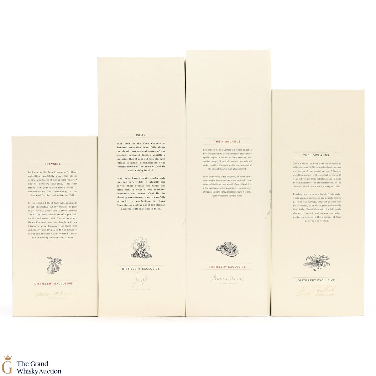 The four distilleries represent the 'four corners of Scotland' and it's regional whisky variations which are at the heart of Diageo's Johnnie Walker blended Scotch whisky range; Lowland - Glenkinchie, Speyside - Cardhu, Islay - Caol Ila and Highland - Clynelish.