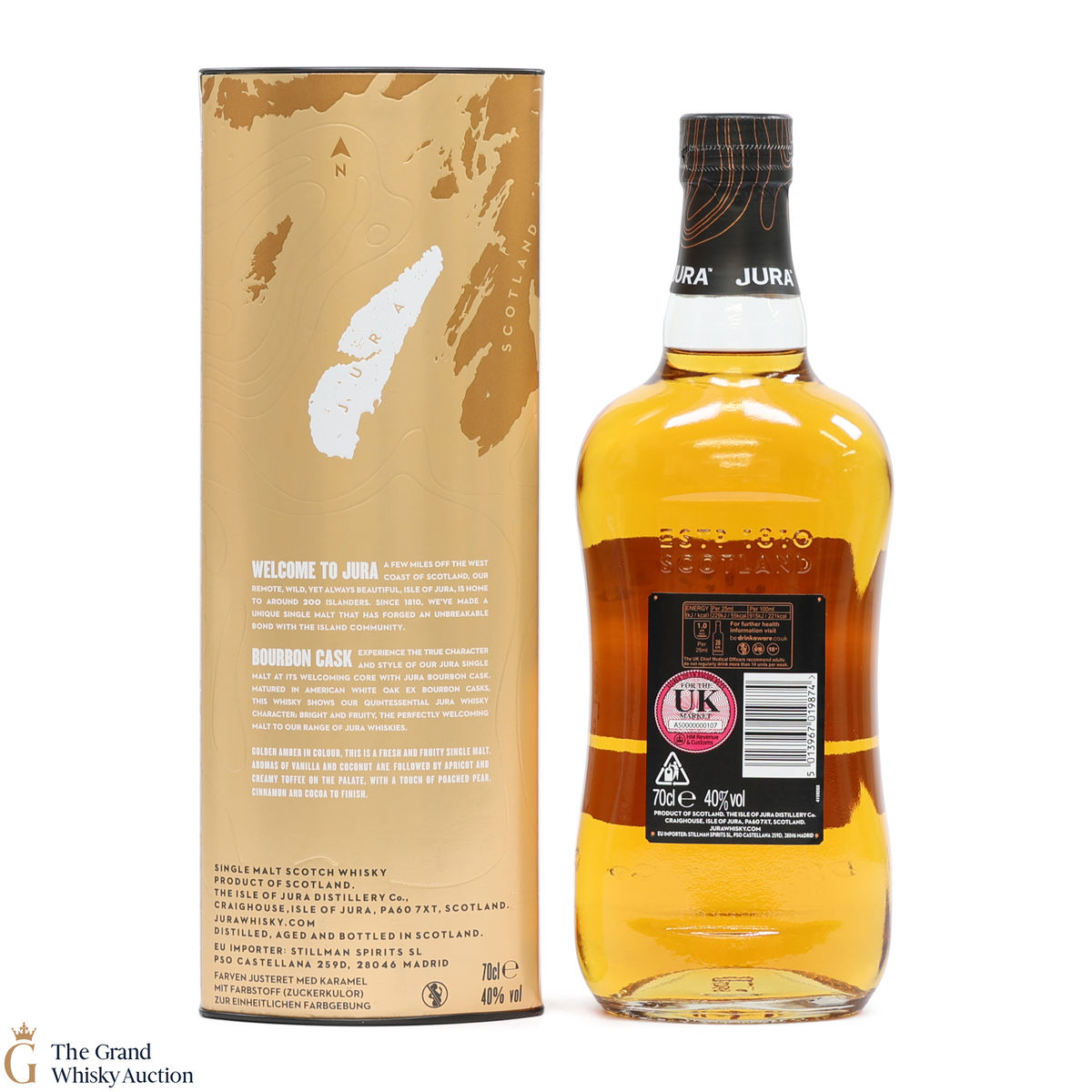 This single malt was matured in American white oak ex-bourbon casks. This whisky shows the quintessential Jura whisky character: bright and fruity, the perfectly welcoming malt to the Jura whiskies.