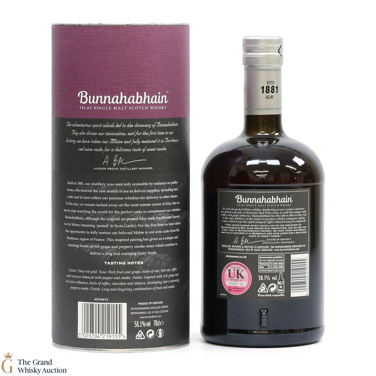 'Mòine' meaning peated in Gaelic - this release brings together both peat smoke and a richly flavoured red wine cask. This limited release was fully matured in red wine casks from Bordeaux. Distilled in 2008 and matured for 9 years in warehouse No.8. This is one of 4536 individually numbered bottles.