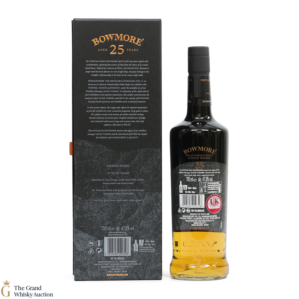 Due to the various ages of bottles and their seals, the condition of liquid is at the buyer's discretion and no claim can be lodged against failure/leakage in transit. Loss and breakage cover is available at 3% of the hammer price as standard. If the lot is not insured, no claim can be lodged against the courier or The Grand Whisky Auction for breakage or loss in transit.