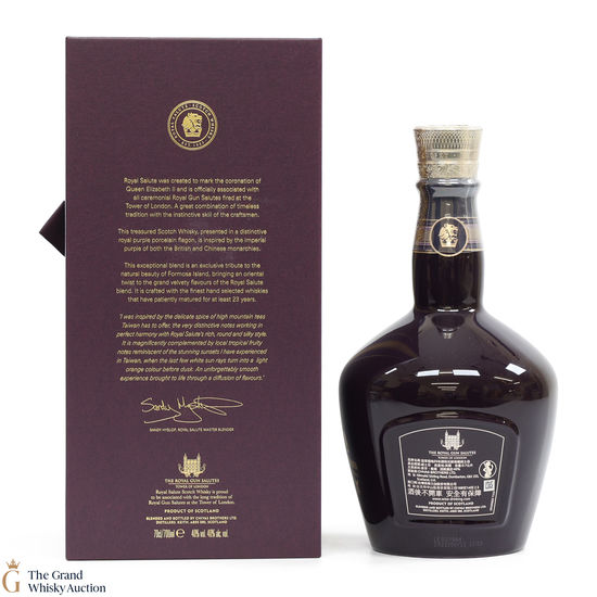 This 21 Year Old is presented in a unique porcelain flagon, painted with a sapphire glaze reminiscent of the gems set within the Imperial State Crown.