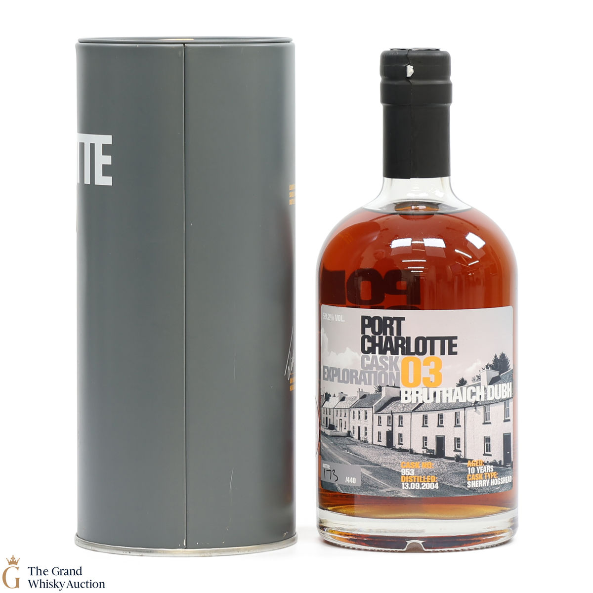 A Port Charlotte 2004 vintage matured for 10 years in Sherry hogshead #953. Part of the Cask Exploration range, this is edition 03 Bruthaich Dubh. One of 440 individually numbered bottles, this is a limited edition from Bruichladdich Distillery. This is a 50cl bottling.