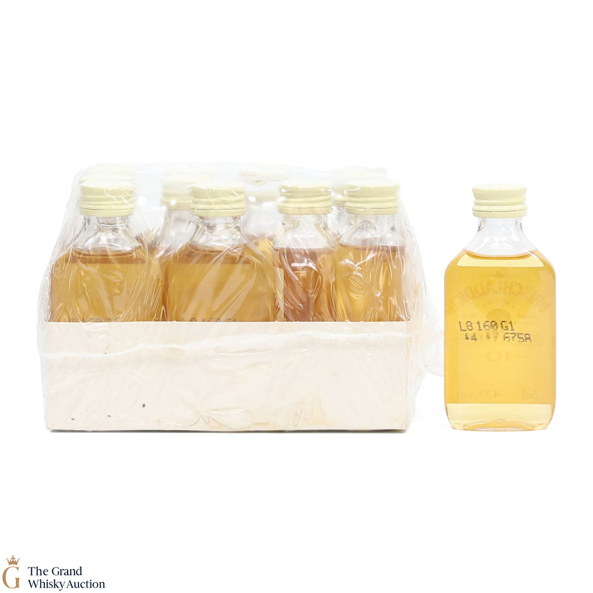 This lot includes 12 x 5cl plastic bottles of Bruichladdich 10-year-old single malt whisky, bottled at 43% ABV.