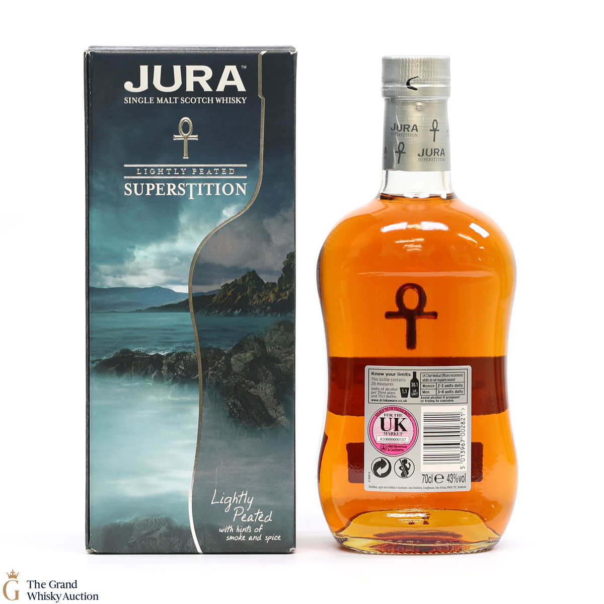 A lightly peated single malt made up of different ages. It is named after the fact that Islanders were very superstitious in the past, this is a nod to them, and to the Island of Jura which is still dotted with ancient stones and markings. When you raise a glass of this whisky, you're raising a glass to the ancient ways of the Island.