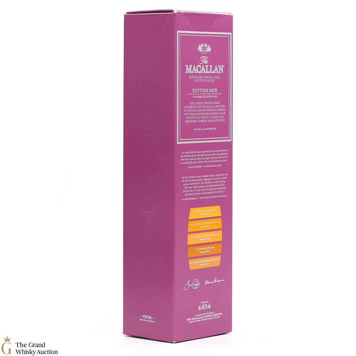 The fifth release in the Edition Series from The Macallan, The Macallan Edition No. 5 celebrates The Macallan’s extensive natural colour spectrum and the intricate whisky-making process, in partnership with masters at the Pantone Color Institute™ to create a unique shade of purple that features on the packaging.