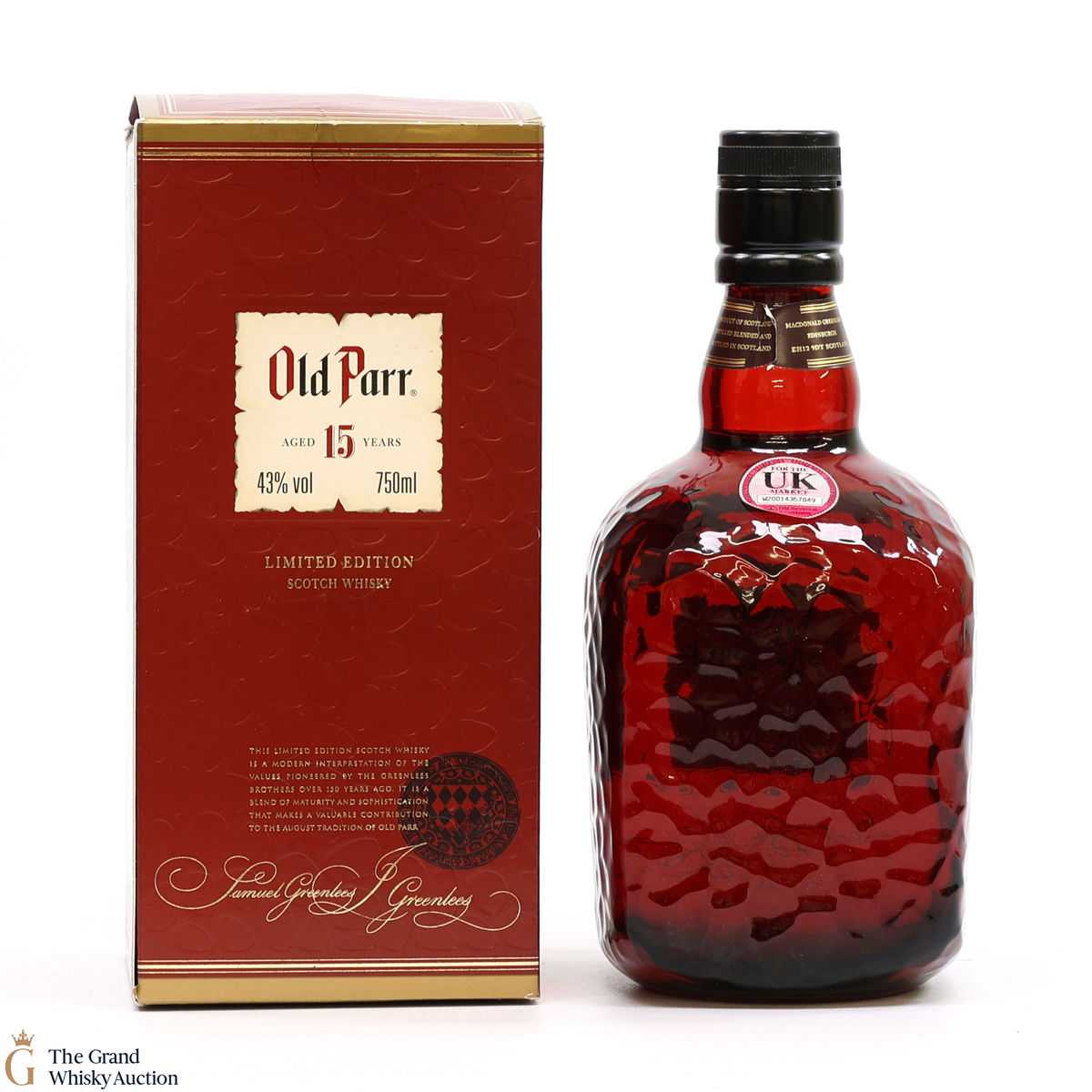 This is an increasingly rare bottling of Old Parr 15-Year-Old. This is a 75cl bottling. It is named after Thomas Parr.