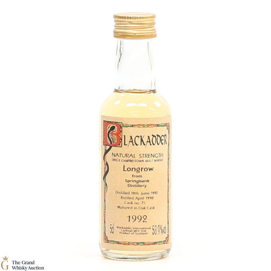 Distilled at the Springbank distillery on the 19th of June 1992, this Natural Strength Single Campbeltown Malt was matured in an Oak Cask before being bottled by Blackadder in April 1998.