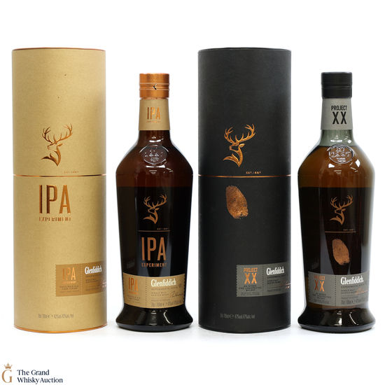Glenfiddich - Experimental Series - IPA #01 & Project XX #02 - With 2x Glasses, Hip Flask and Stand (2x70cl)