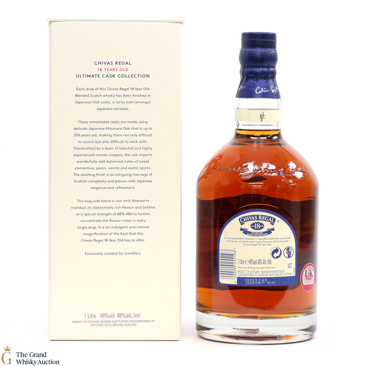 Each drop of this Chivas Regal 18 Year Old Blended Scotch whisky has been finished in Japanese Oak casks, a rarity even amongst Japanese whiskies.