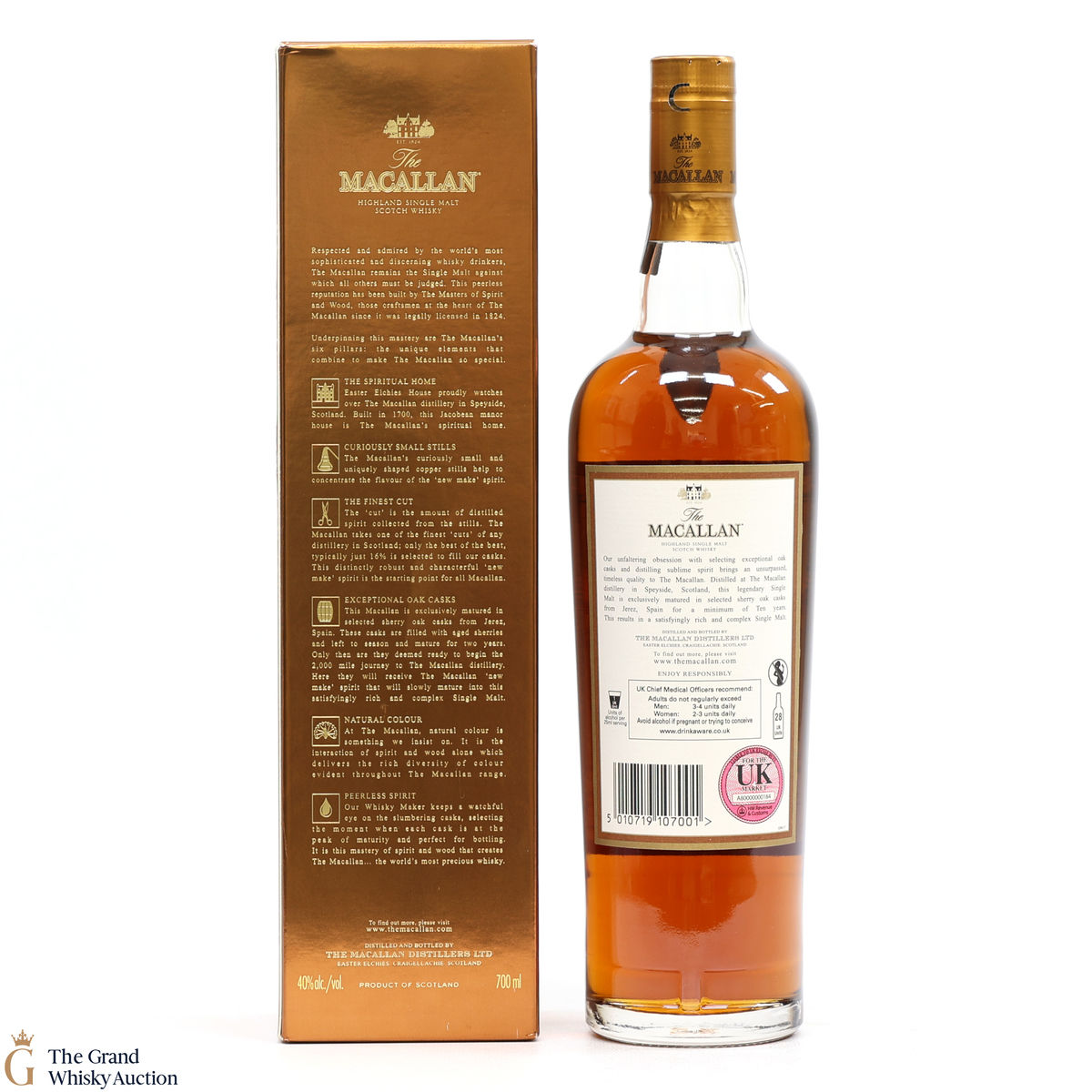 Distilled at the world-renowned Macallan Distillery in Speyside, this single malt was matured exclusively in sherry oak casks from Jerez, Spain. It was aged for a total of 10 years prior to bottling at a strength of 40% ABV.